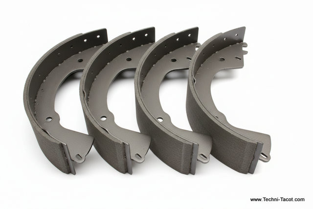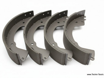 Jeu de 4 mâchoires AV regarnies, en échange standard. Ford Comète (Nous faire parvenir votre jeu avant expédition du nouveau) Frictions haute performance, collage industriel. Mâchoires décapées et vernies. (photo non contractuelle) - 65 x 280 mm + 66 x 285 mm épaisseur 5 mm