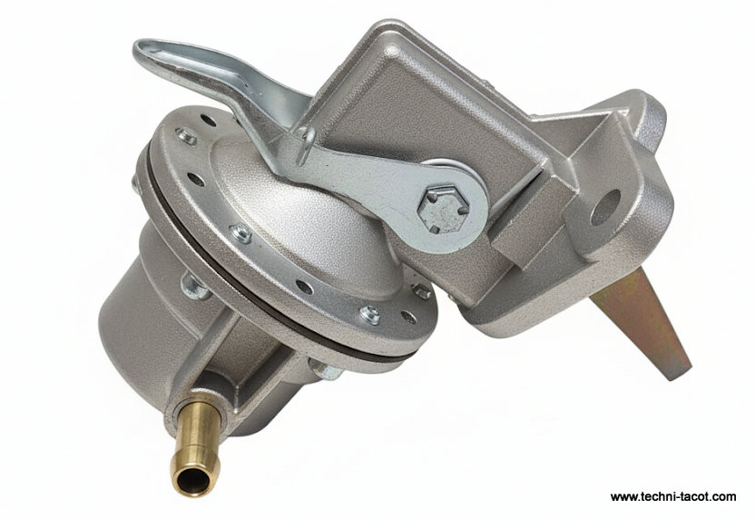 " 12V electric fuel pump. Connects in series with the original fuel line. Keeps the hand pump. Avoids having to lift the hood to turn up gasoline before starting. To be powered through a push button for occasional operation. Low pressure, no need ...