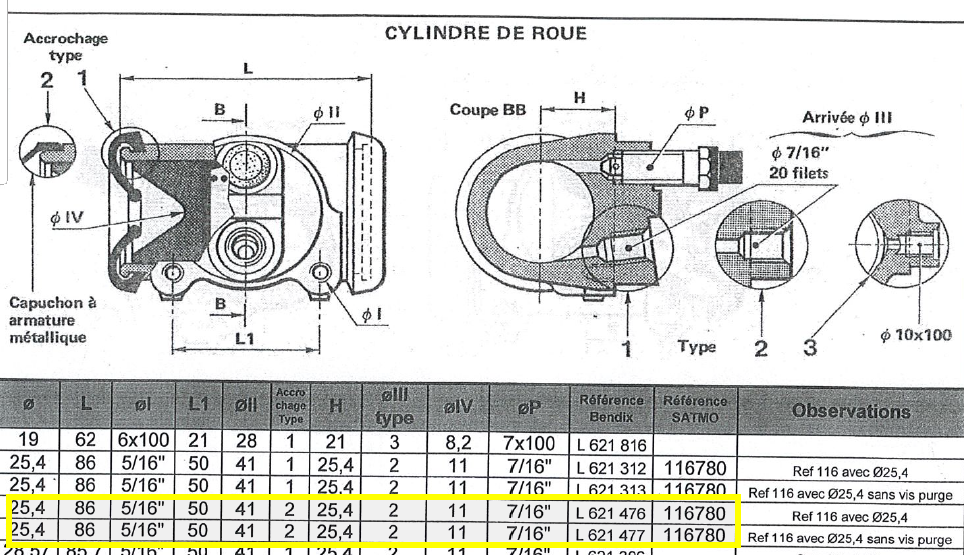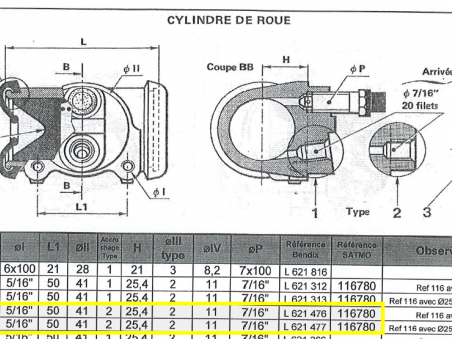 Master cylinder complete with bellows: D 1'1 / 4 or 31.75 mm - inlet 3/4 - 16 f outlet 1/2 - 20fEntry in 18 mm. If the old model was 22mm, order the adapter here.Peugeot 202 UH